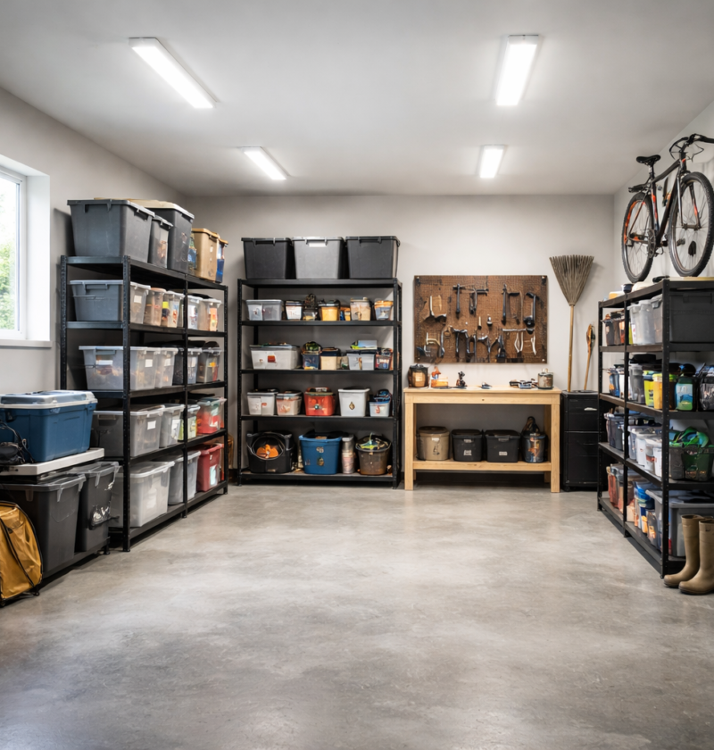 V garažah je svetloba pogosto podcenjena, ker prostor ni bivalen. V praksi pa ravno slaba osvetlitev povzroča nered. Če ni jasno vidno, kam spada kateri predmet, se vse odloži na prvo prosto mesto. LED svetila so danes cenovno dostopna in energijsko učinkovita, kar potrjujejo smernice EU o energetski učinkovitosti razsvetljave in splošni premik trga v LED tehnologijo v zadnjem desetletju. Pri opremljanju garaže z minimalnim proračunom je pametno izbrati enakomerno, razpršeno svetlobo, ne pa ene same močne točke, ki ustvarja sence za regali.